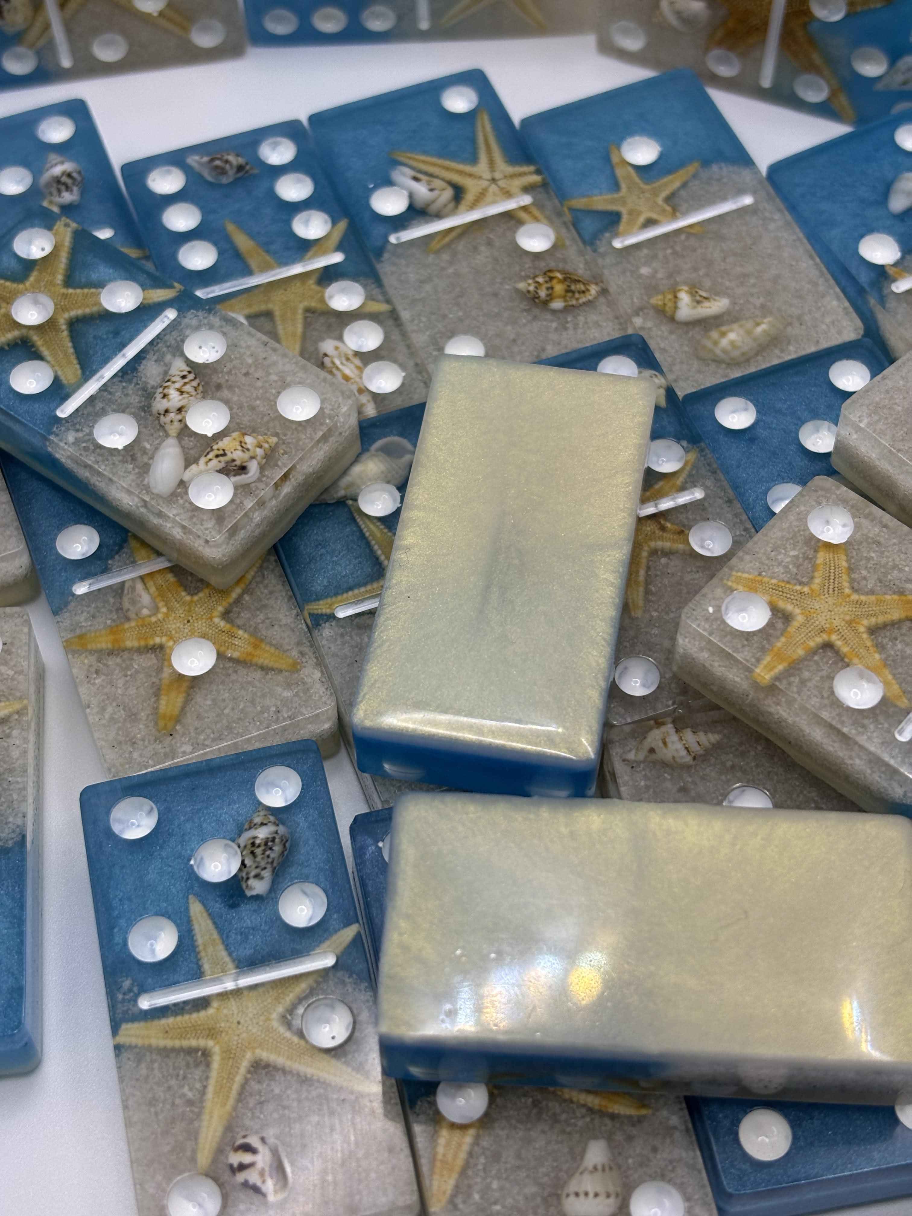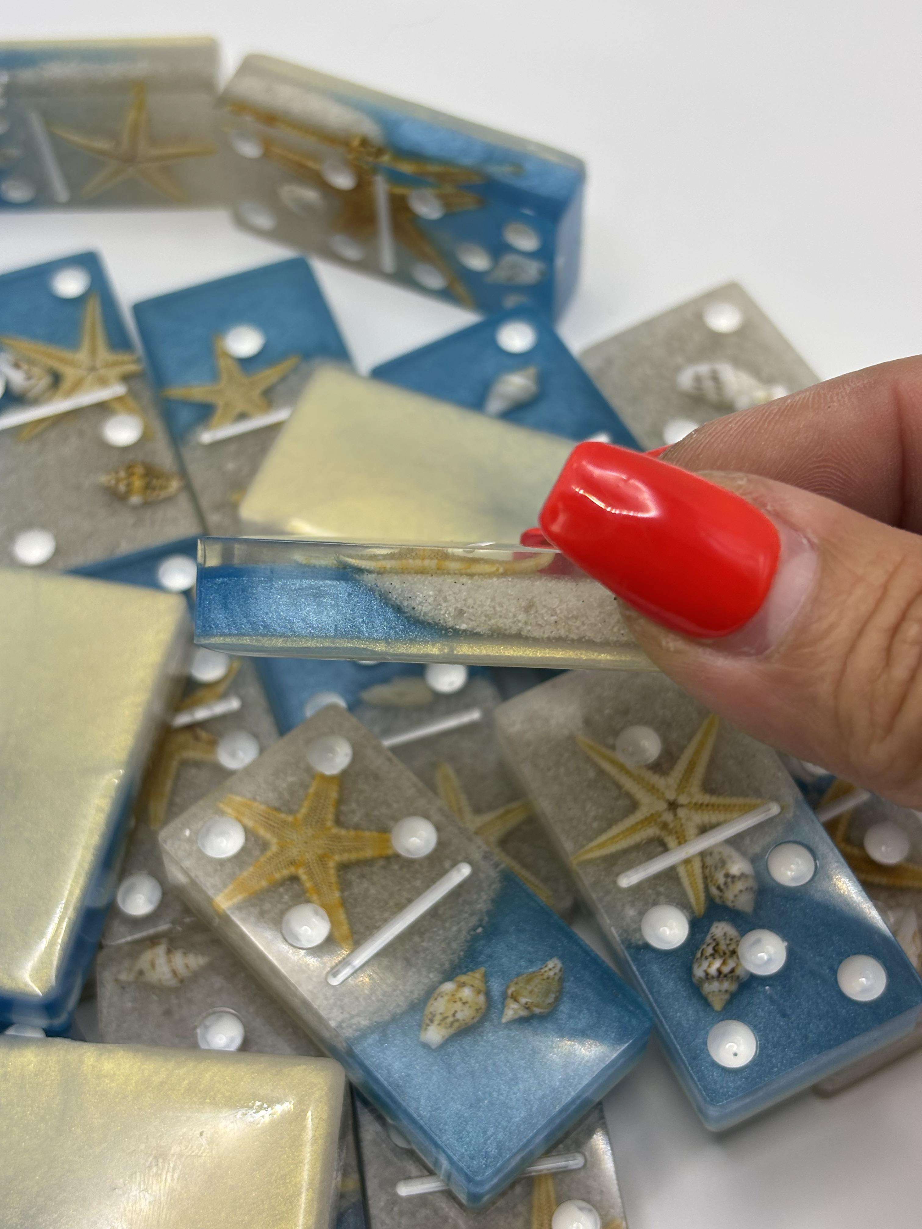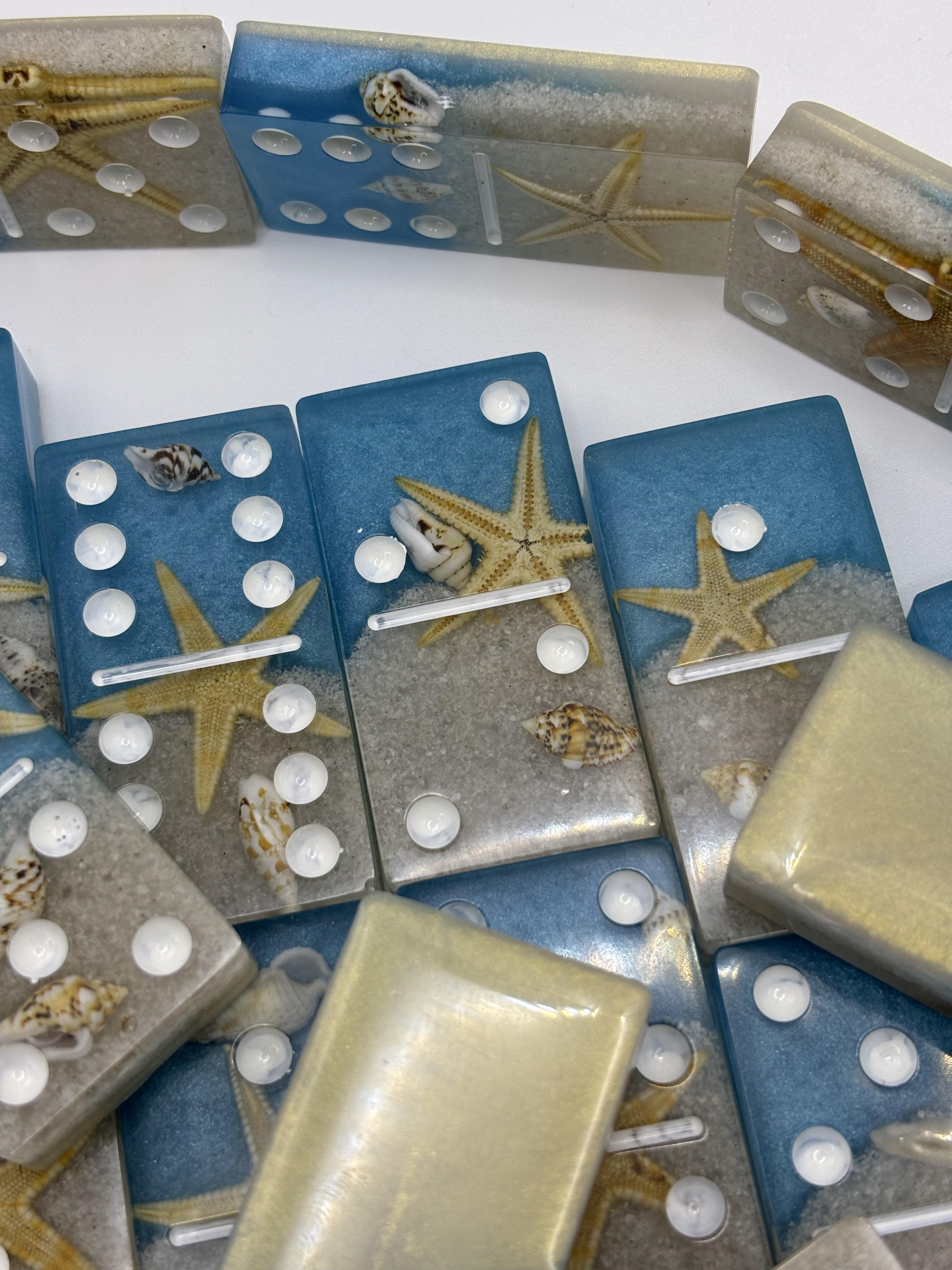 Bring the ocean to game night with this stunning handmade beach resin domino set! 🌊🐚
