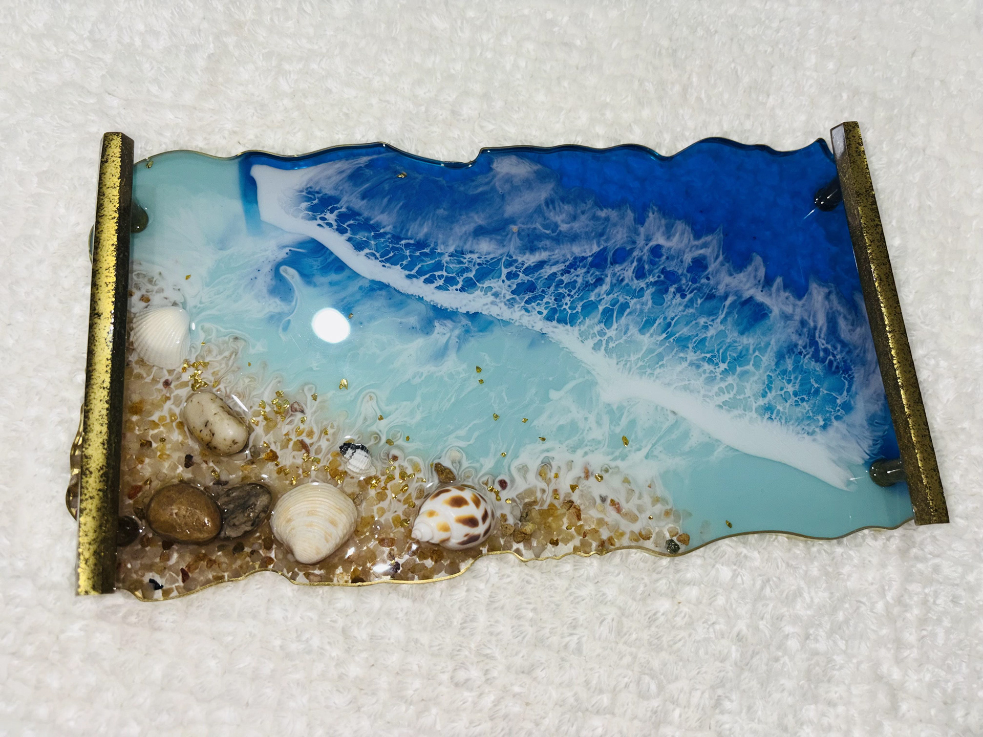Handmade Ocean Resin Tray – Coastal Statement Decor