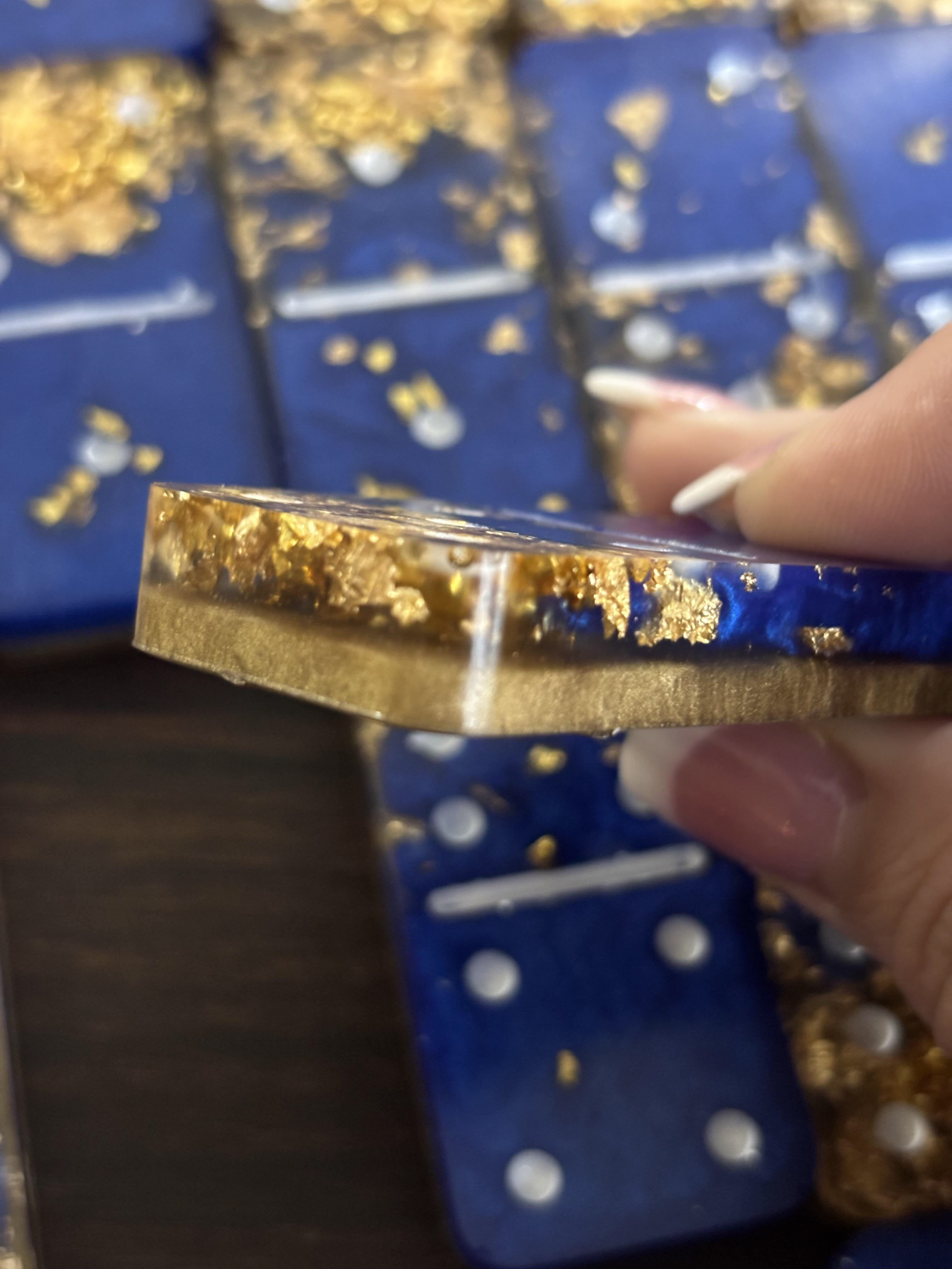 • These dominoes are not only bold and elegant — they’re durable, weighted, and visually striking. The gold leaf adds the perfect elevated touch for anyone who loves luxury resin art, unique game sets, or custom handmade gifts.