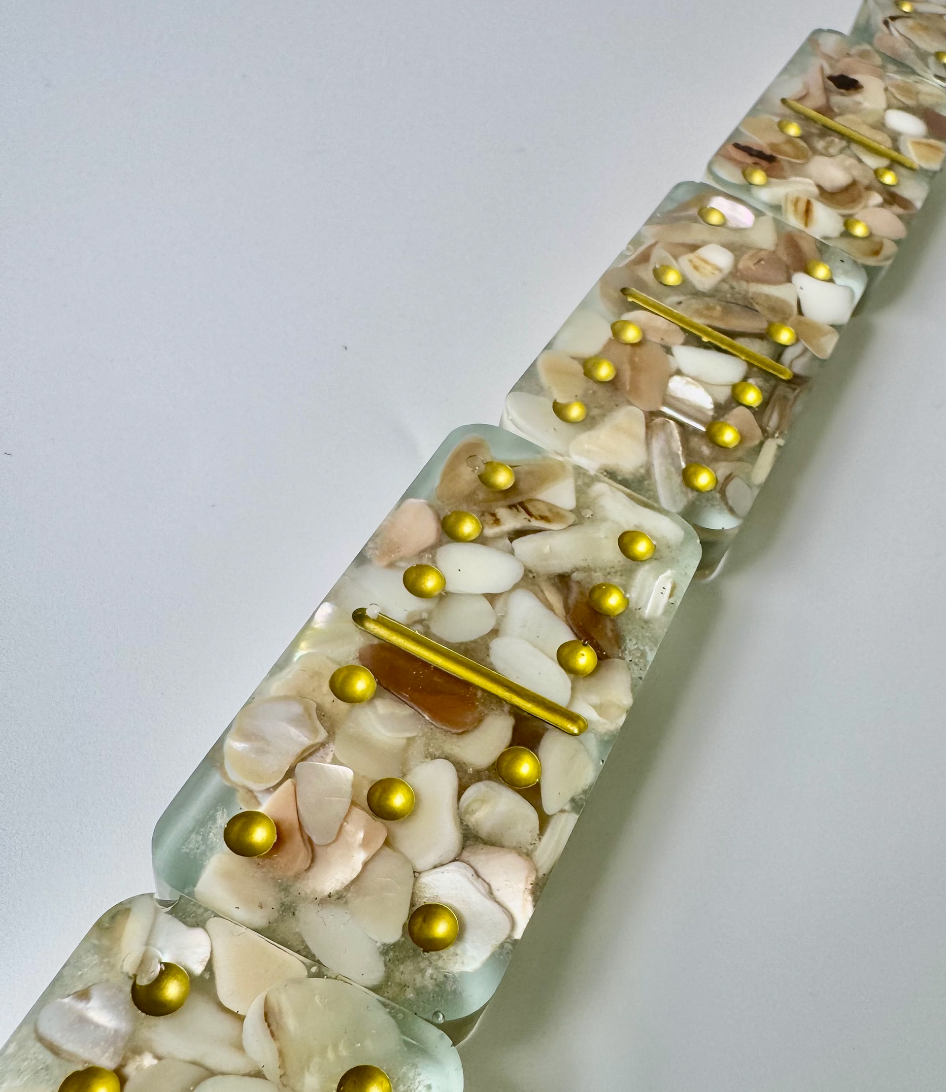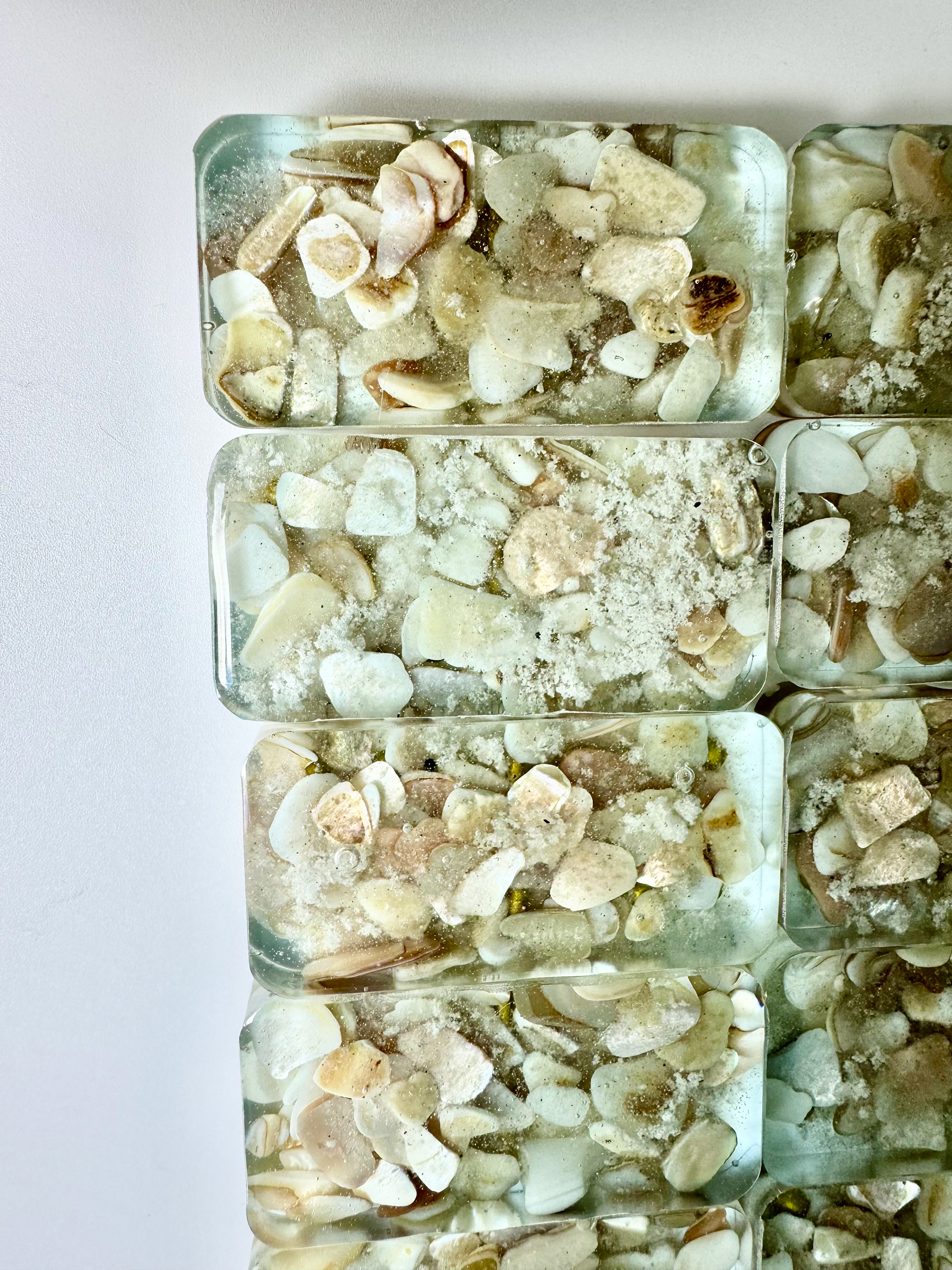 • Design: Coastal-inspired with natural shells encased in crystal-clear resin