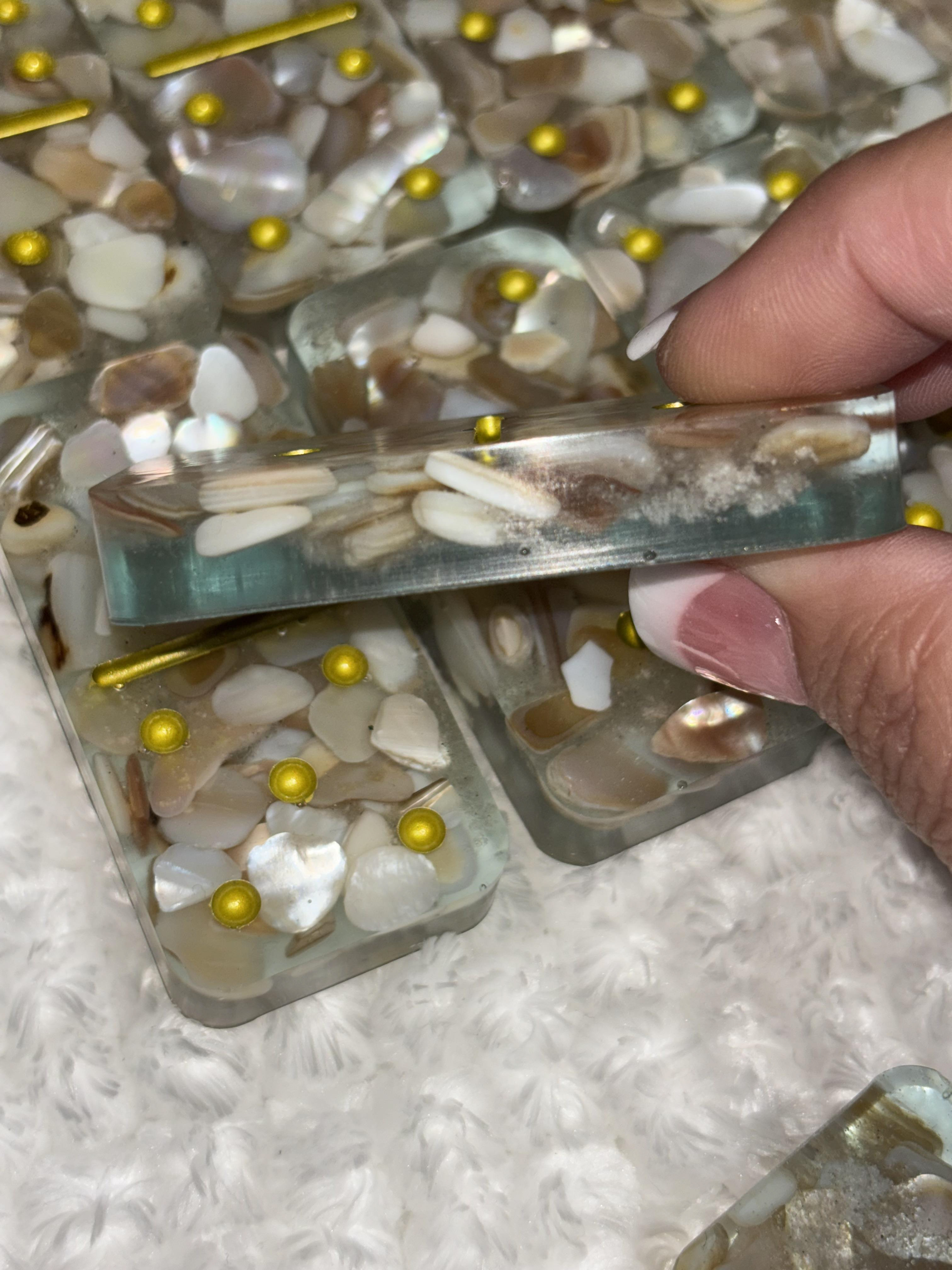• Materials: High-quality resin, real seashells, and gold embellishments