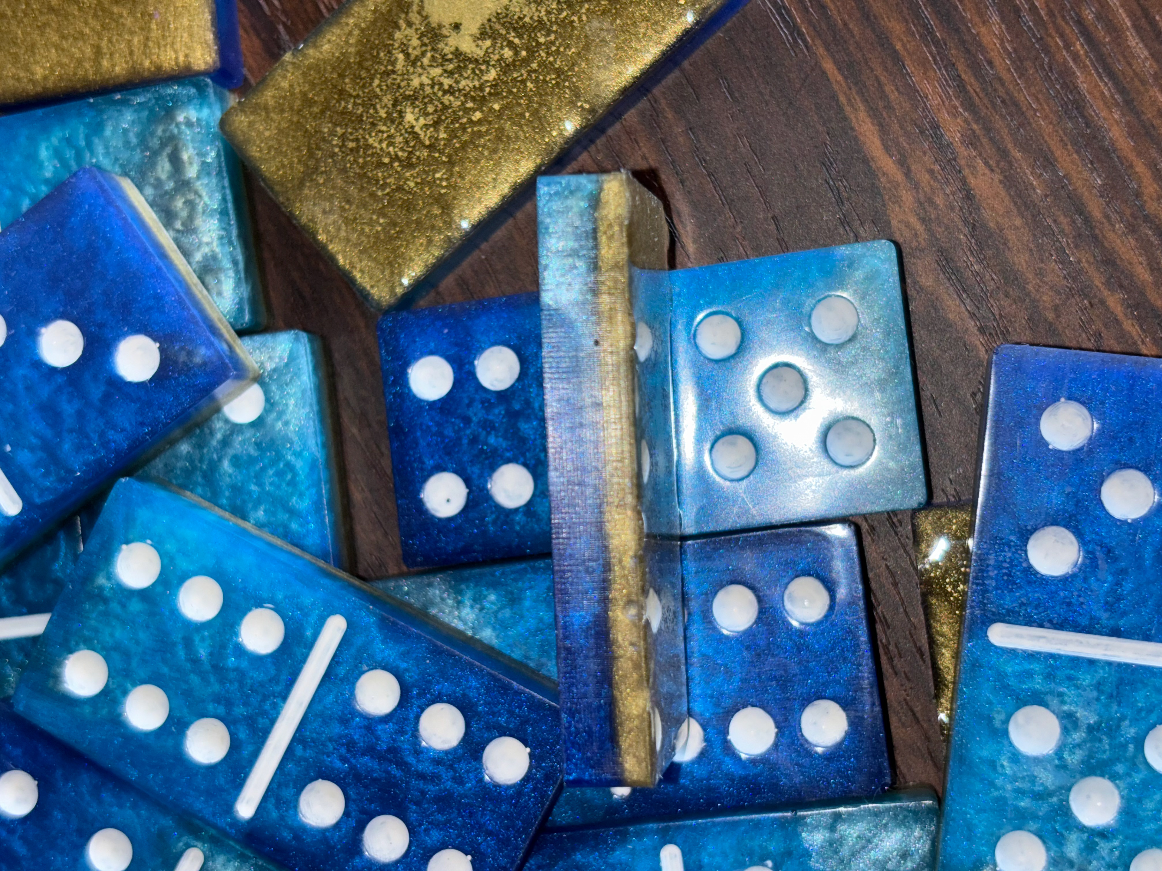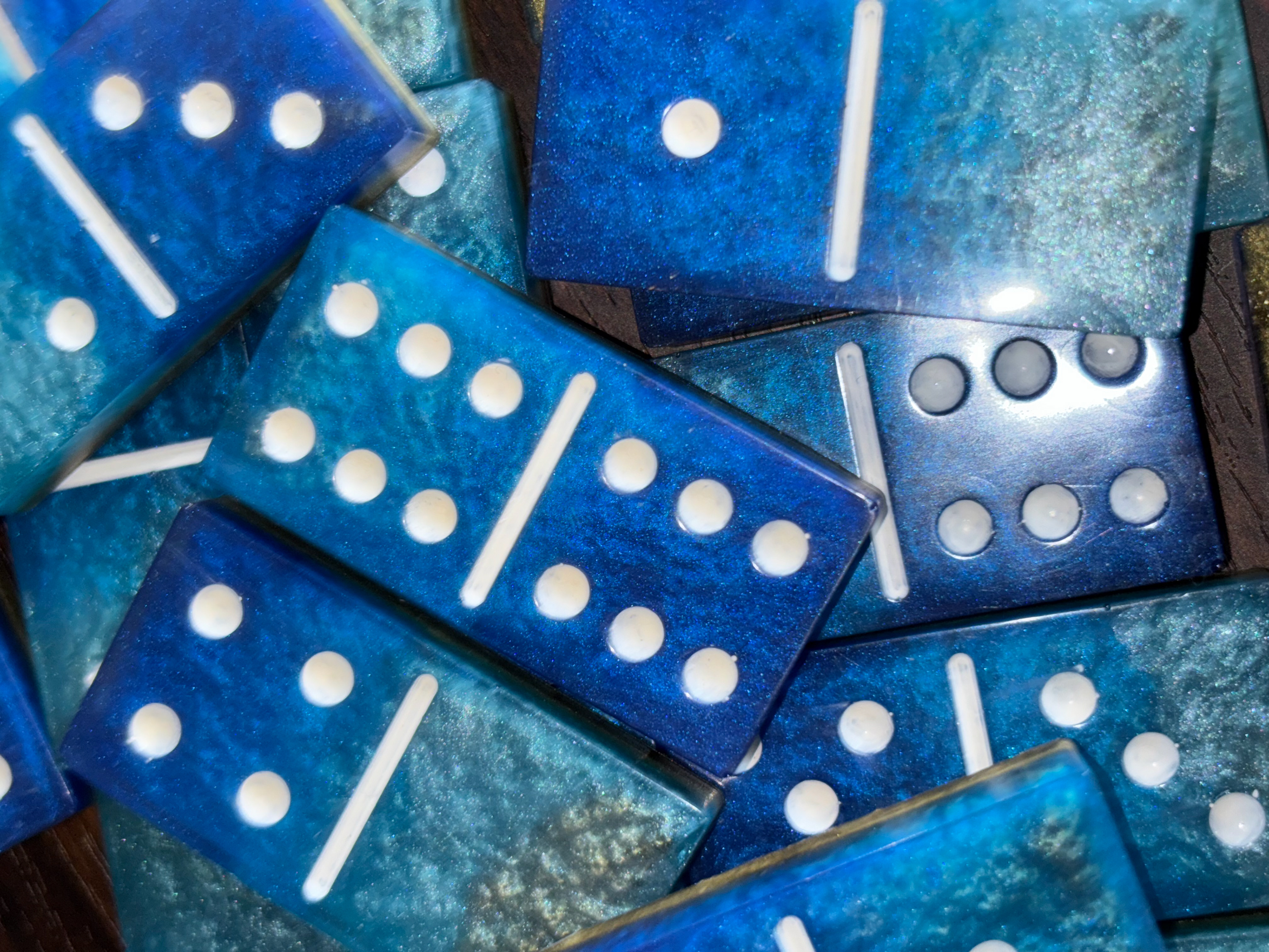 Whether you play often or want a beautiful decorative set, these resin dominoes are durable, glossy, and completely unique — made in small batches in my studio at The Knotty Pourer.