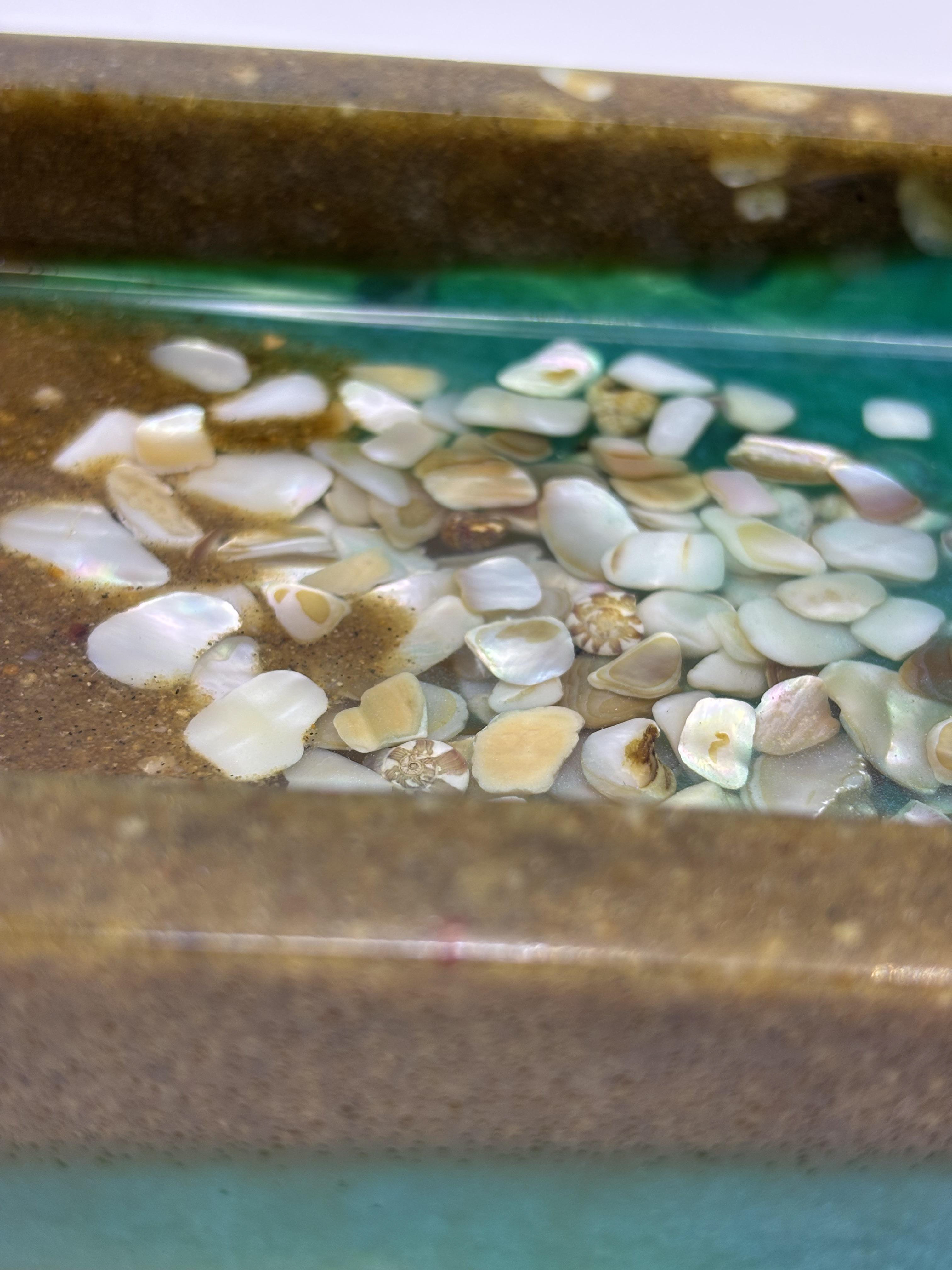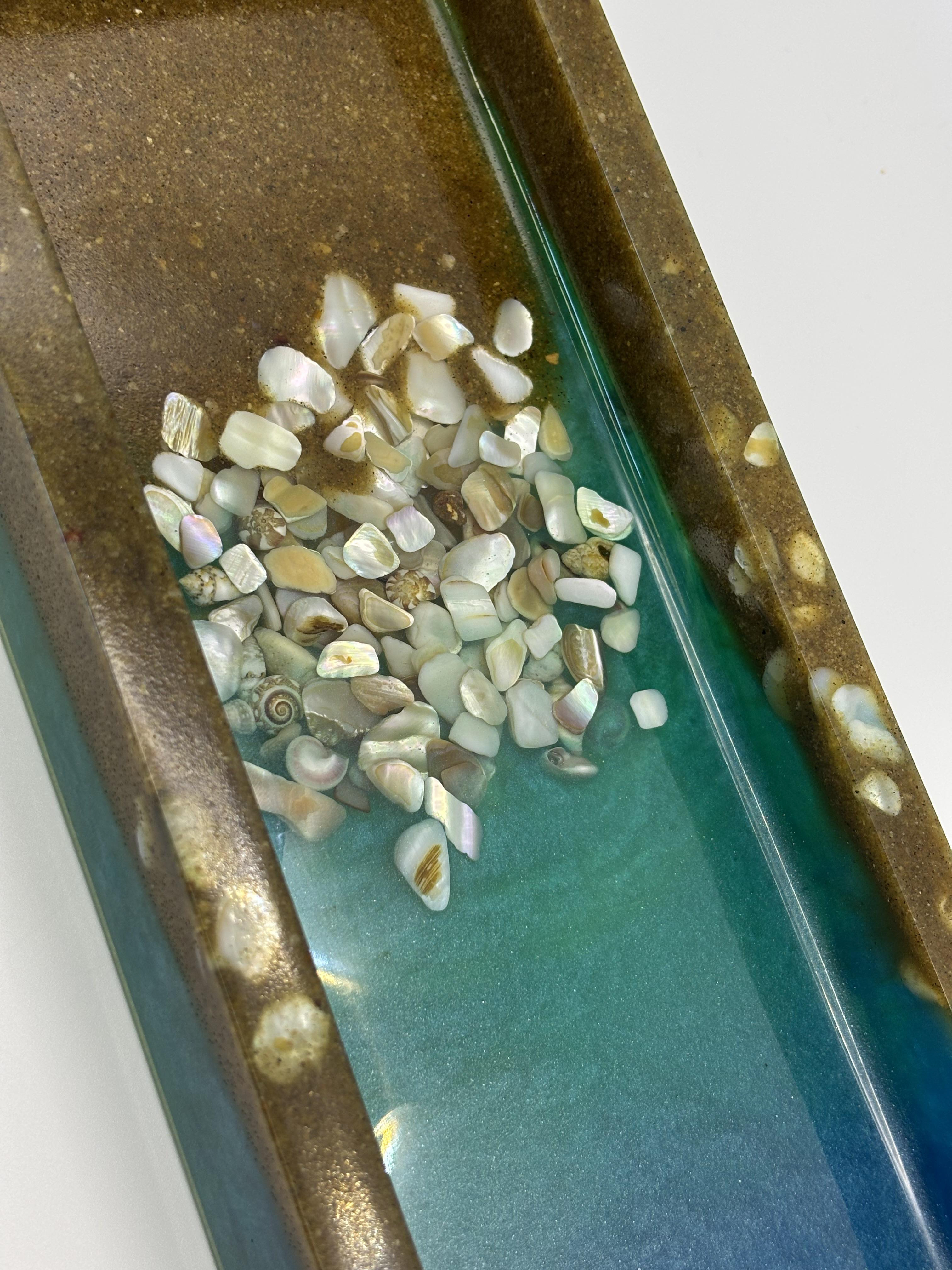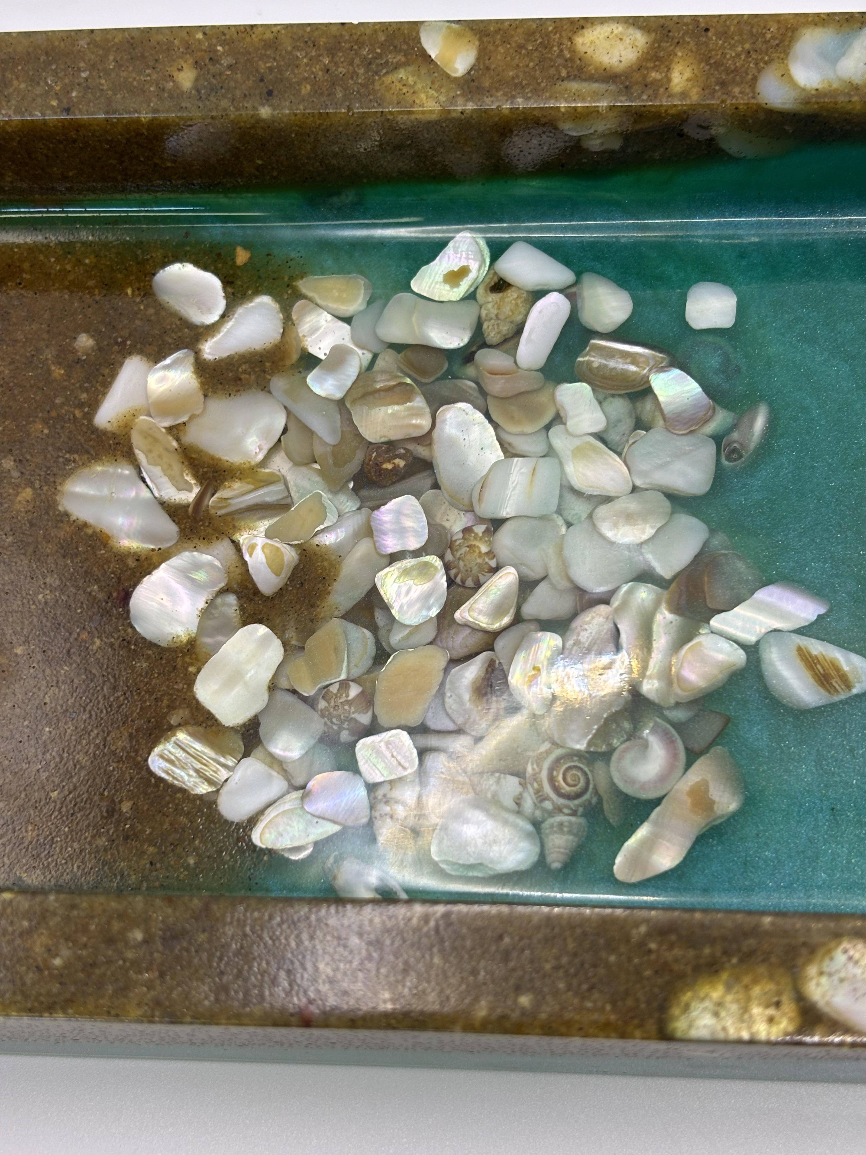• Handmade resin ocean tray with genuine seashells