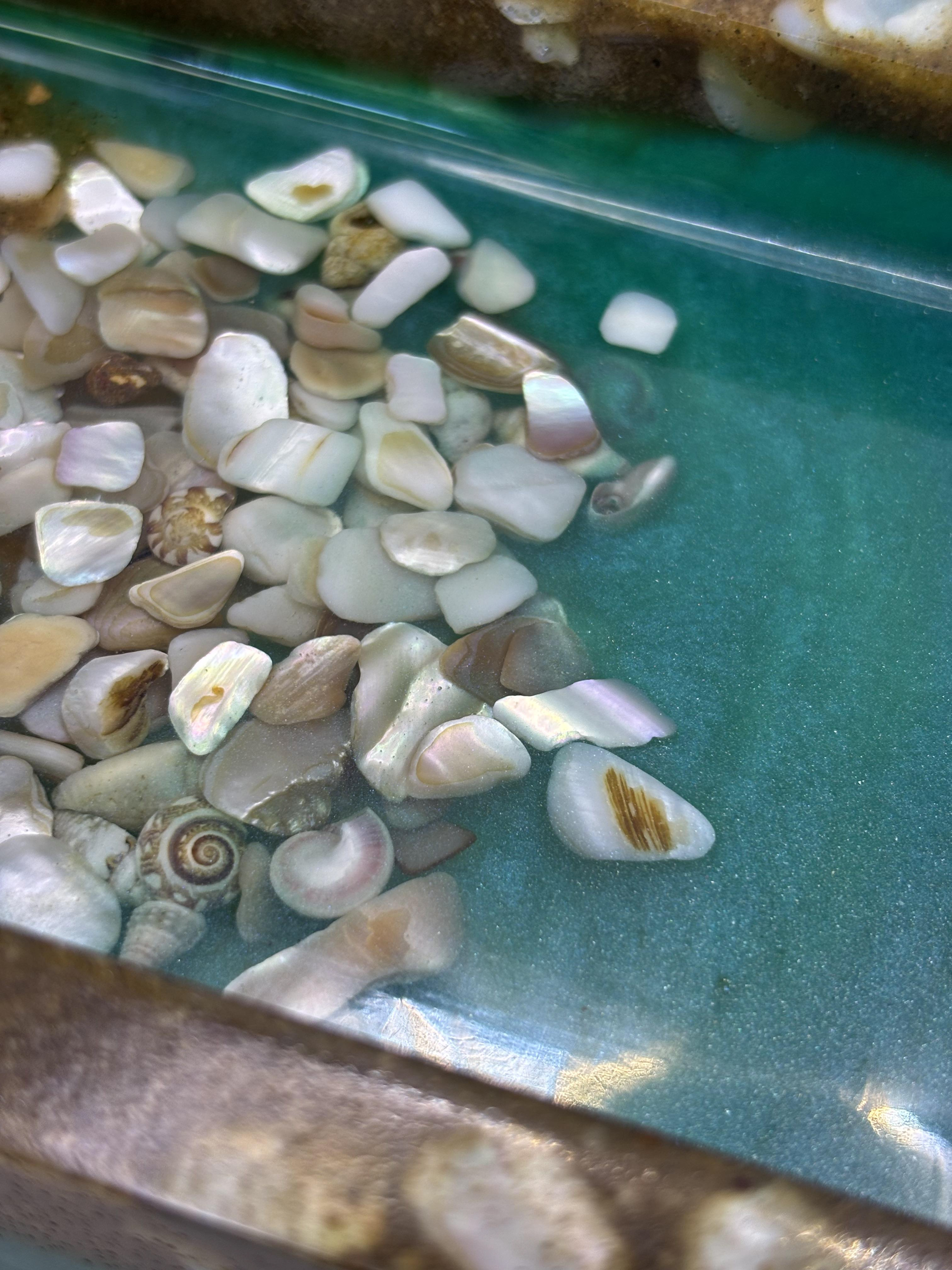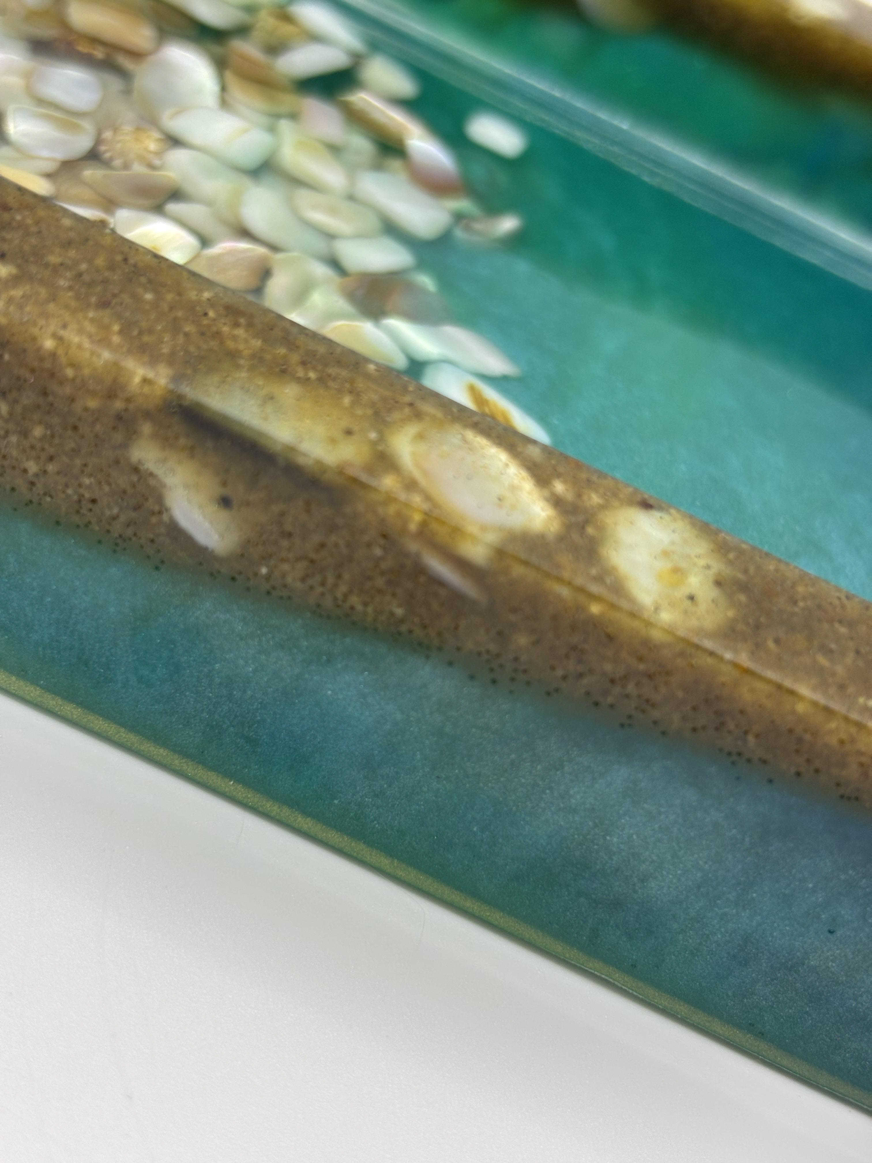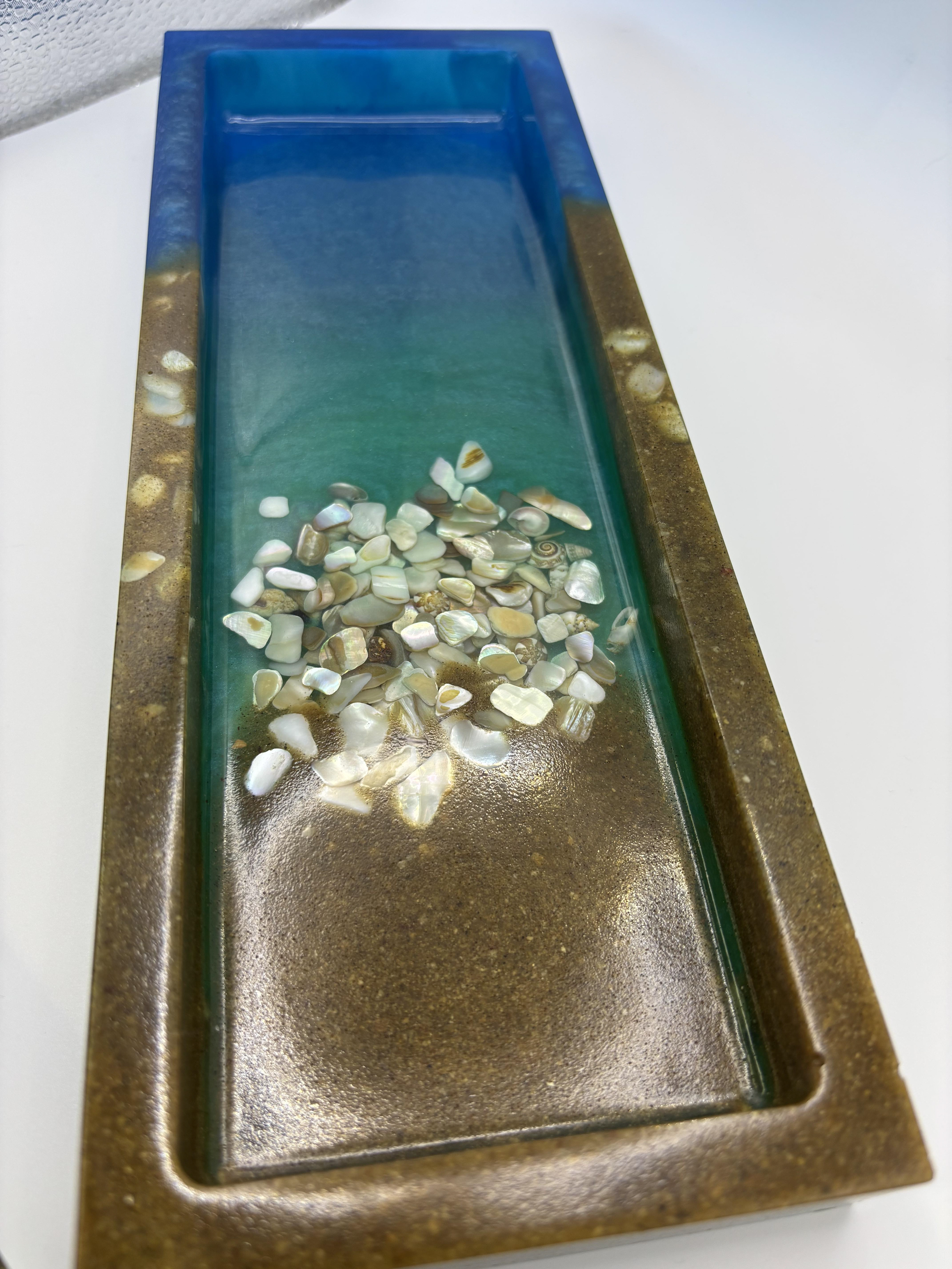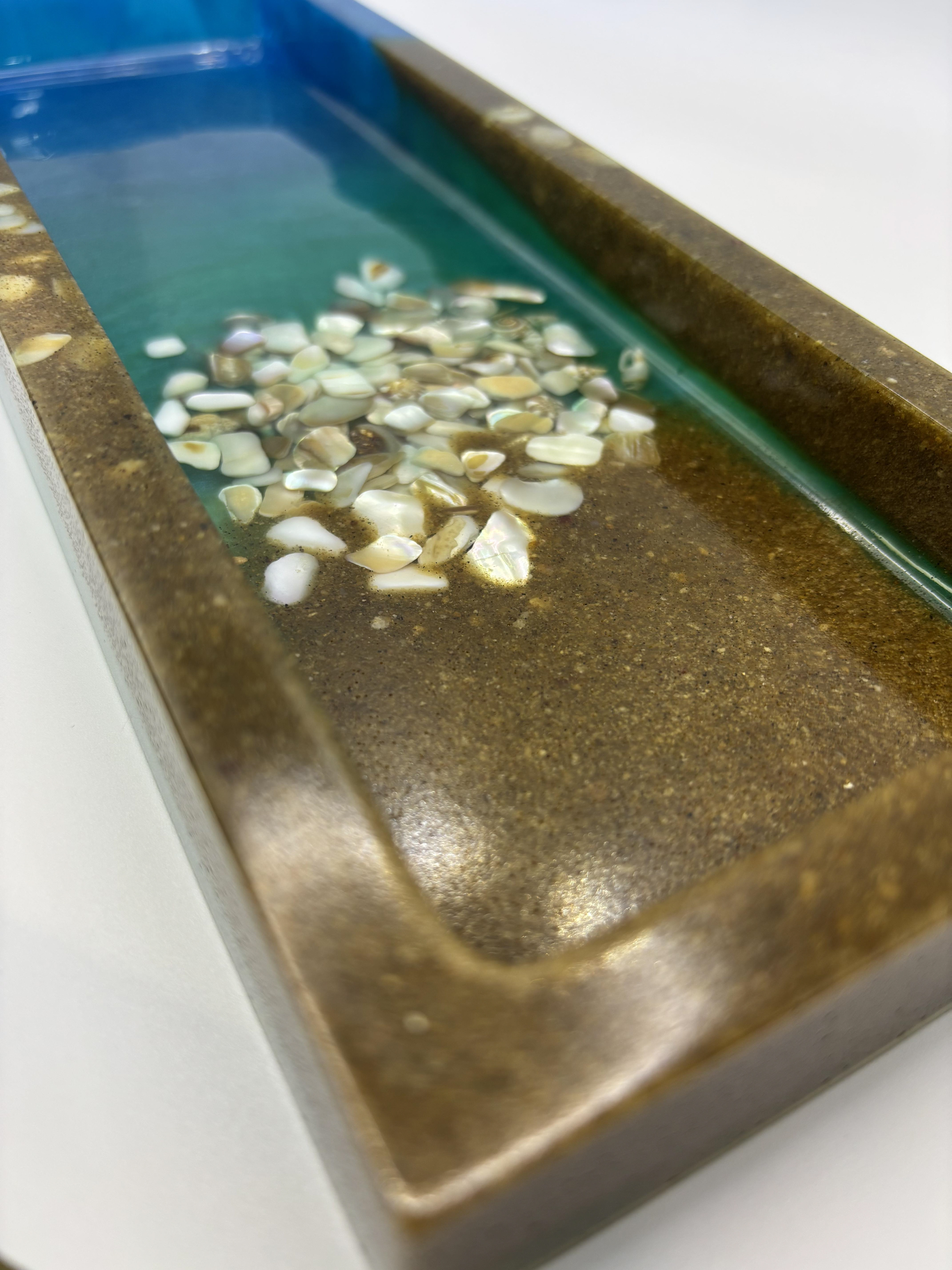 • Handmade resin ocean tray with genuine seashells