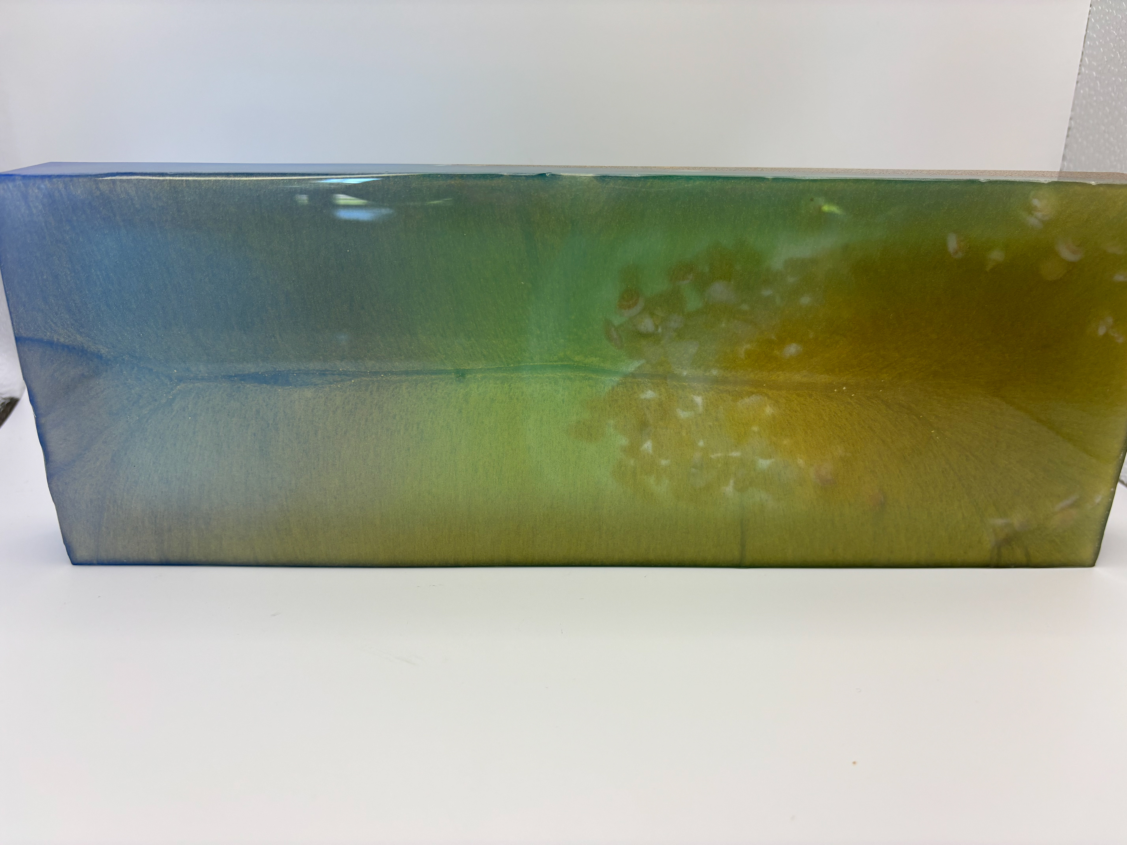 • Layered resin in ocean blues, aqua, and sandy browns for a realistic shoreline effect